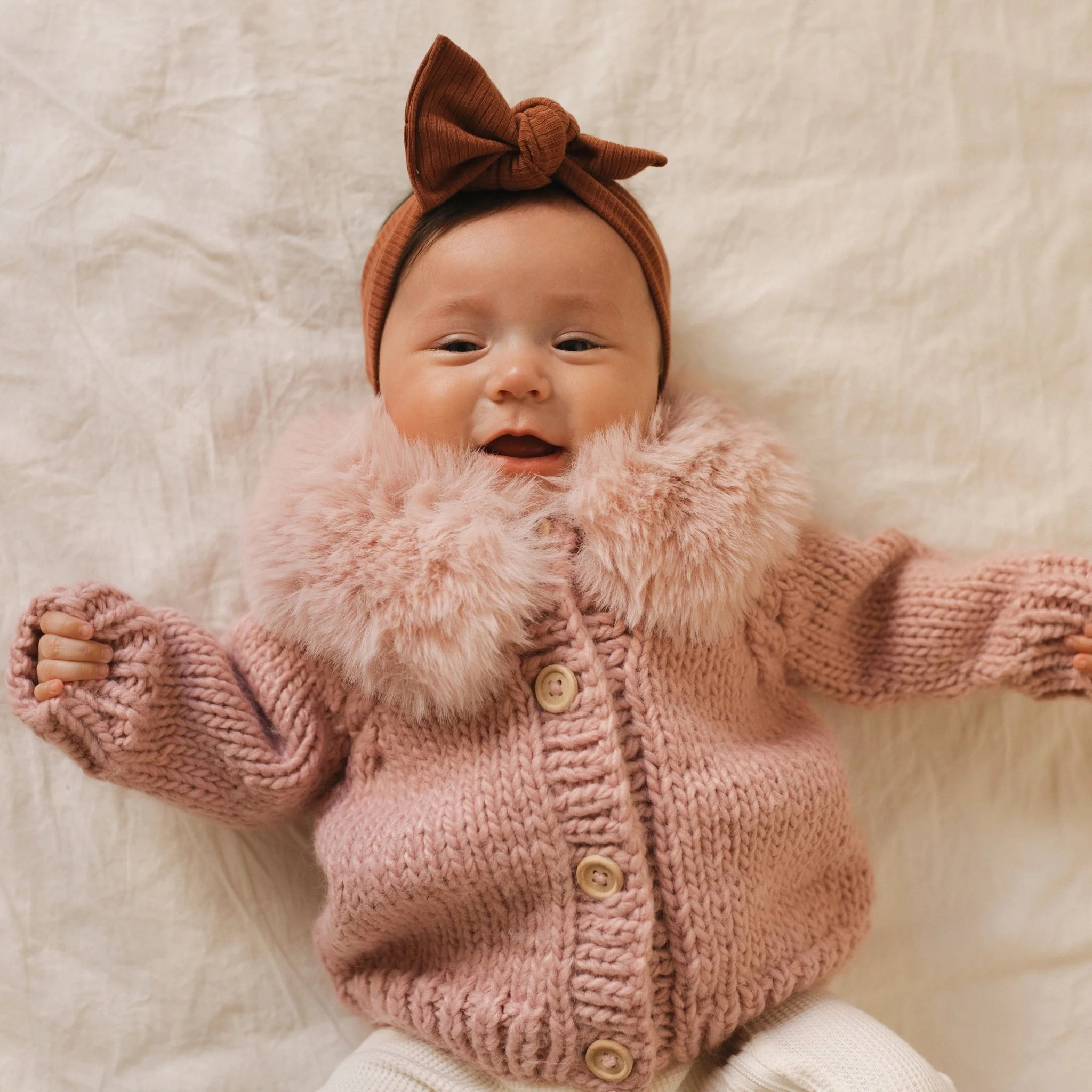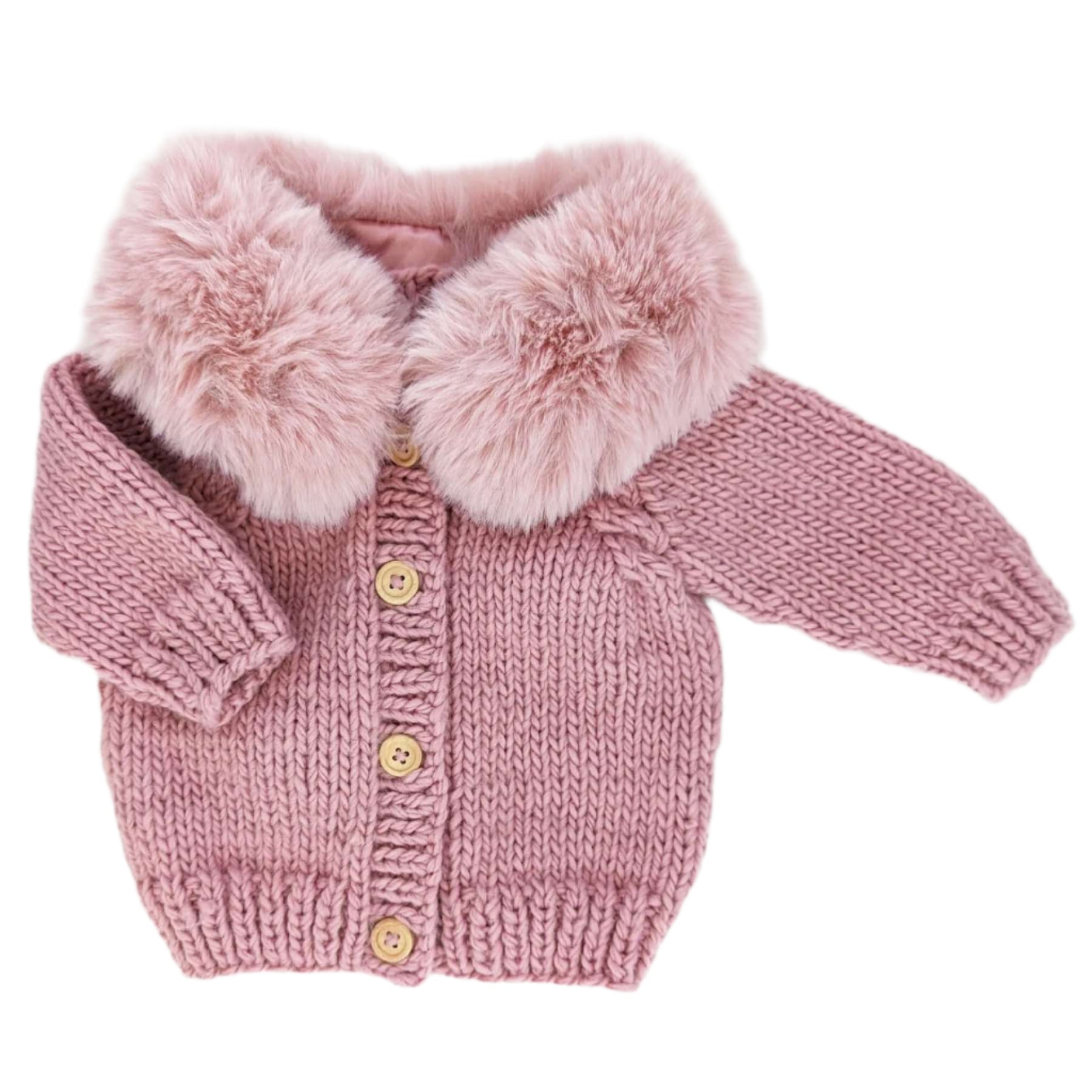 Huggalugs Fur Collar Cardigan Sweater - Rosy