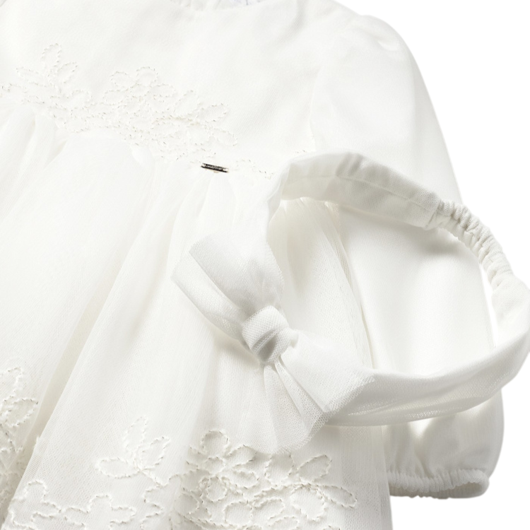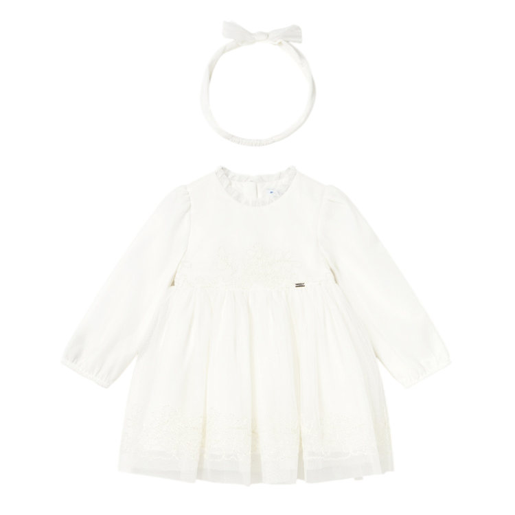 Mayoral Embroidered Tulle Dress + Headband - Ecru