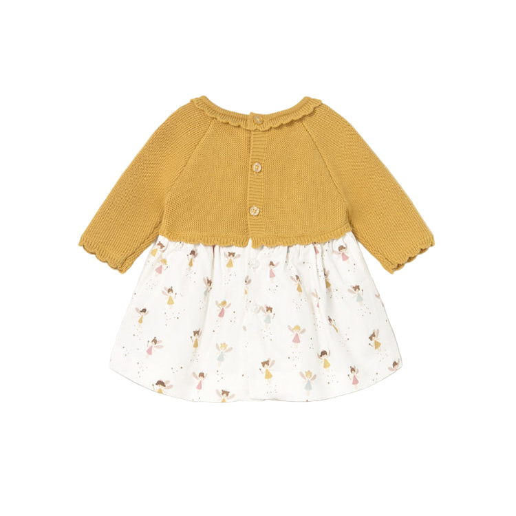 This charming long-sleeved dress for newborn girls combines comfort and style. Crafted from 100% cotton, it features a round neckline and button fastenings down the back for easy dressing.