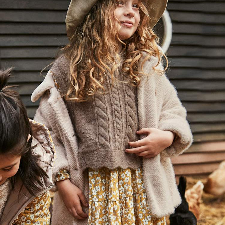 A sweet and stylish layering piece for your little one. This girls’ knit vest features a round neckline and charming side bow details for an extra touch of elegance.