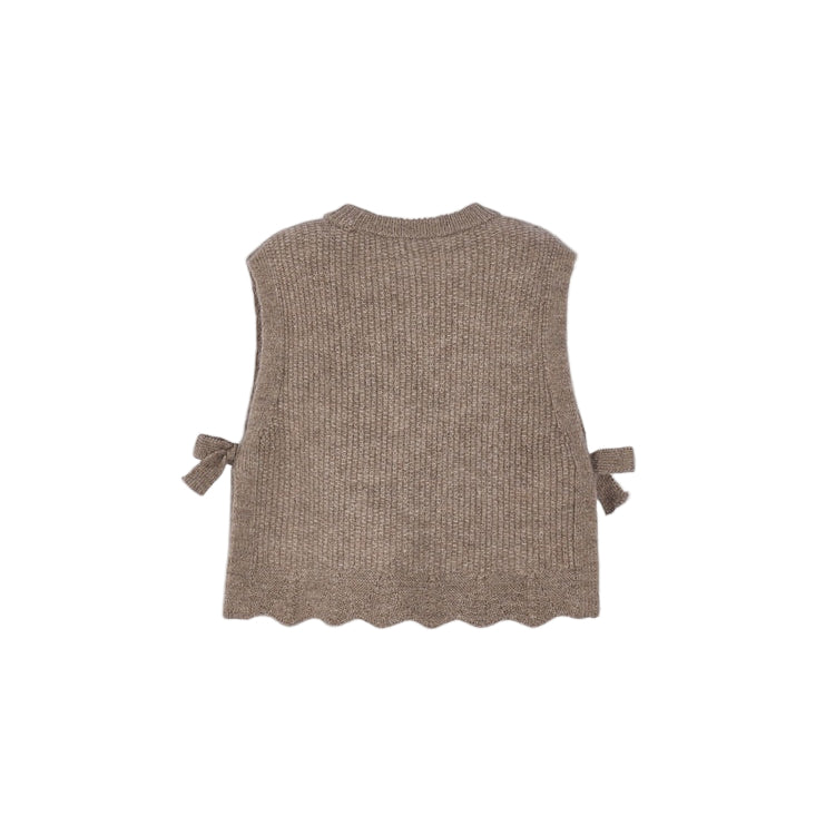 Mayoral Knit Vest with Side Bows - Taupe Mix