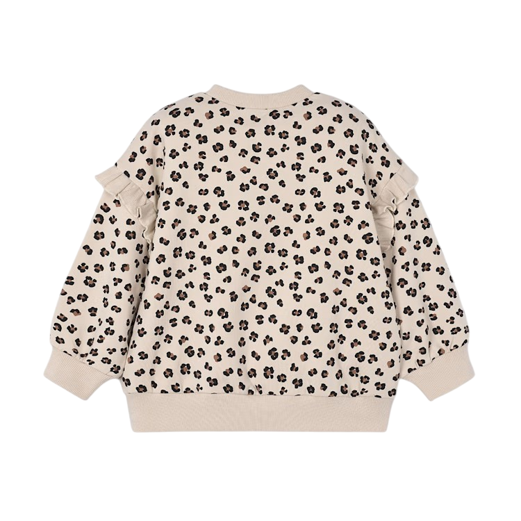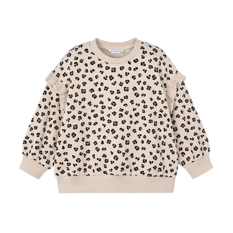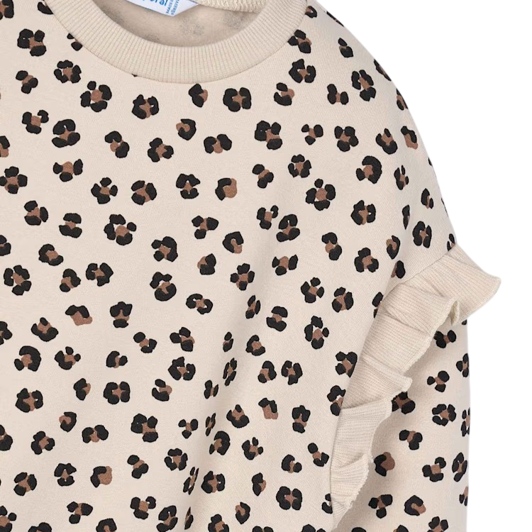 Mayoral Leopard Print Sweater with Ruffled Sleeves - Sand