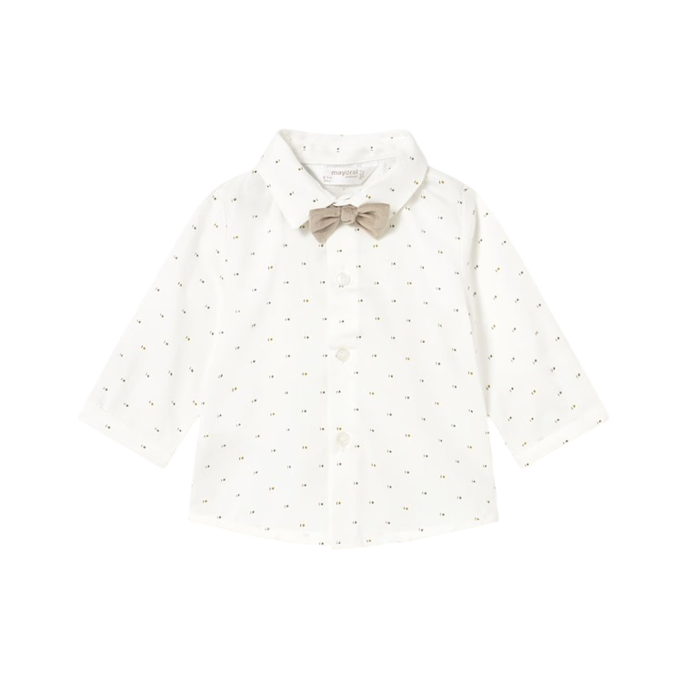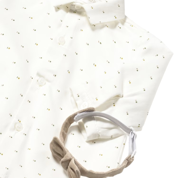 A refined and festive outfit addition, this long-sleeved shirt and matching bow tie set is perfect for dressing up your newborn baby boy. The shirt features a classic collar and front button fastening for easy wear and timeless style.