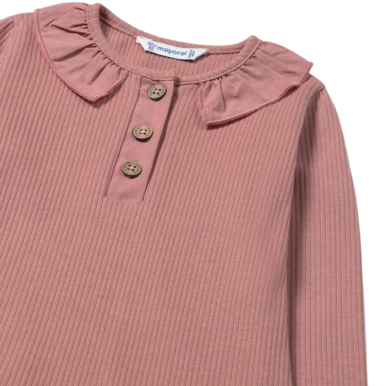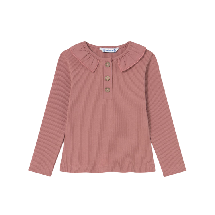 Mayoral Ribbed Polo Shirt with Ruffle Collar - Clay