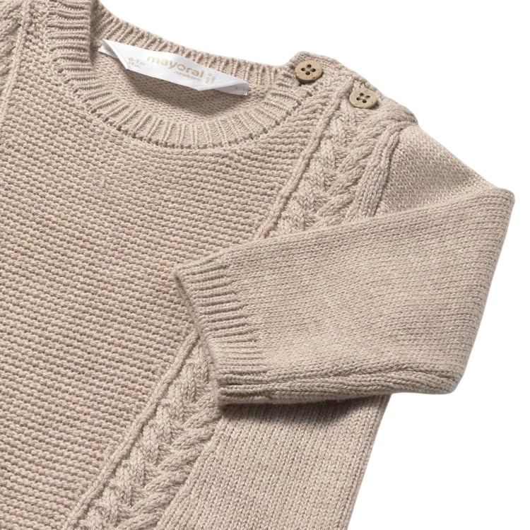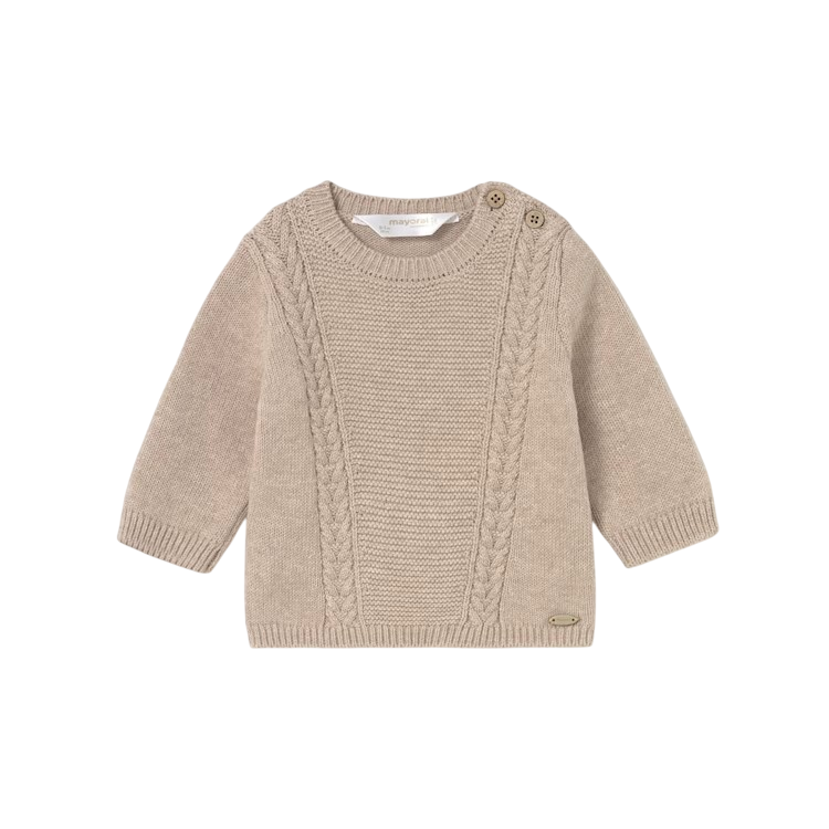 Wrap your baby in cozy softness with this beautifully knit sweater from Mayoral. The warm dune heather tone offers a neutral, timeless look, while the soft knit fabric ensures all-day comfort for your little one. Perfect for layering or wearing on its own, it’s a must-have staple in any newborn wardrobe.