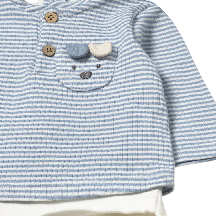 Finished with playful appliquéd ear motifs and delicate embroidery, this striped bodysuit is perfect for everyday wear with a touch of charm.
