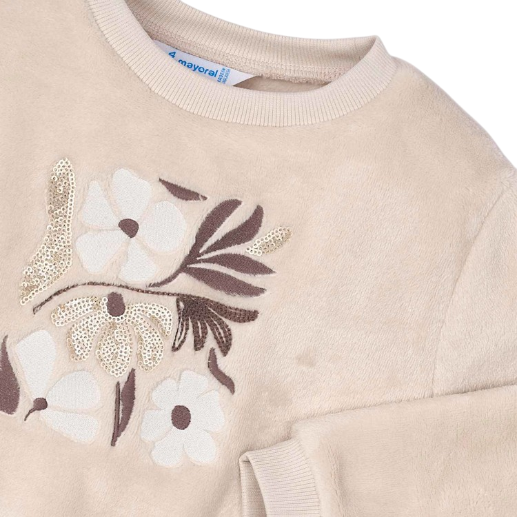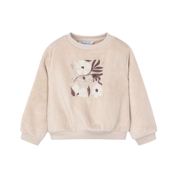 Mayoral Sweatshirt with Floral Faux Fur - Sand