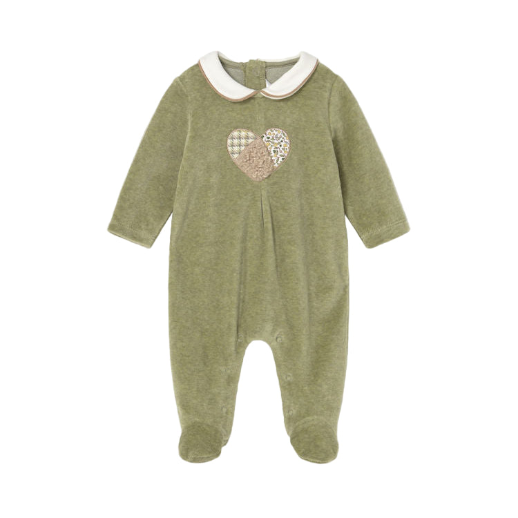 Keep your newborn cozy and stylish with the Mayoral Velour One-Piece in Basil. Made from soft, plush velour, this outfit features a comfortable baby neckline, convenient back snap closure, and snap buttons at the crotch for easy dressing and quick changes.
