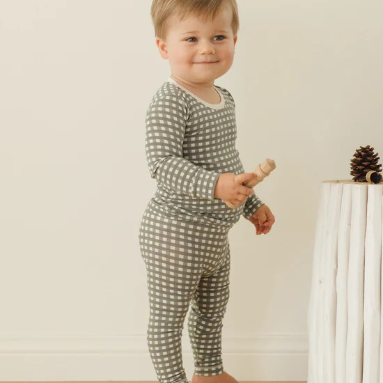 Slim-fit long sleeve tee and leggings pajama set, crafted from soft and stretchy bamboo fabric for all-night comfort.