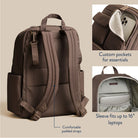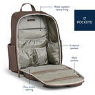 • 17 total pockets (9 internal and 8 external) including 2 insulated bottle pockets and a unique, easy access front mom pocket with stretch mesh pocket and key lanyard.