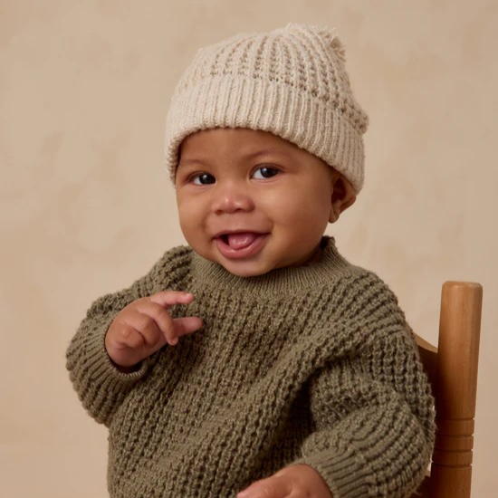 Browse many fashionable hats from natural knit beanies, pom hats, acorn hats, trucker, flannel, snapback, knotted, and bonnets, all in an assortment of colors and patterns that are perfect for cooler weather. As soon as the air gets crisp outside, you can easily pull out one of these cute baby beanies that will fit perfectly snug around their head.