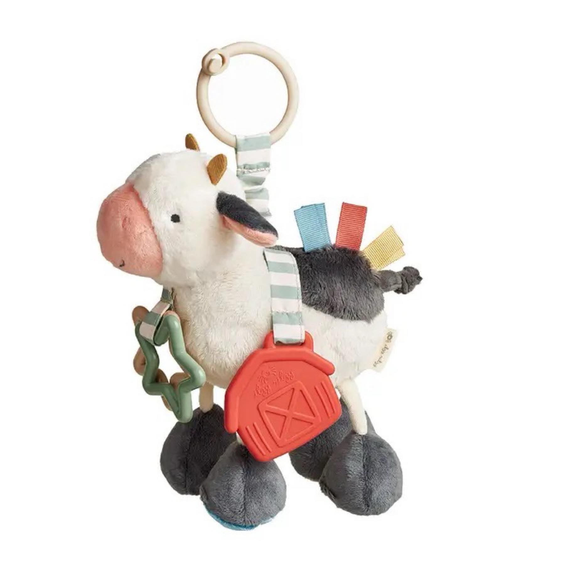 Featuring soft sherpa fabric, ribbon, clinking rings and a textured silicone teether to help soothe sore gums the Itzy Friends Toy Collection Link & Love™ is your baby's perfect playtime friend.