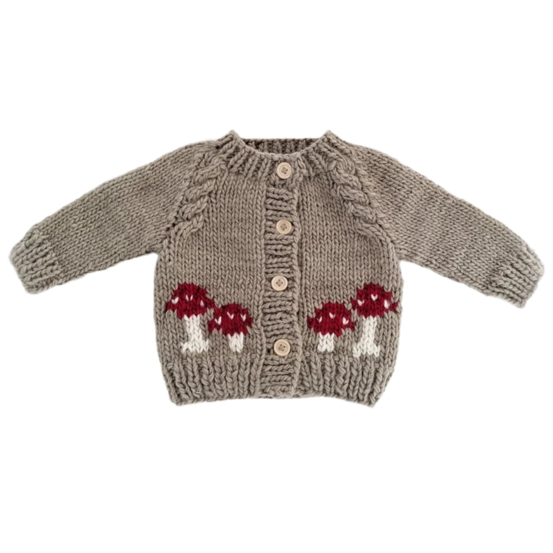 Huggalugs Mushroom Cardigan Sweater - Pebble