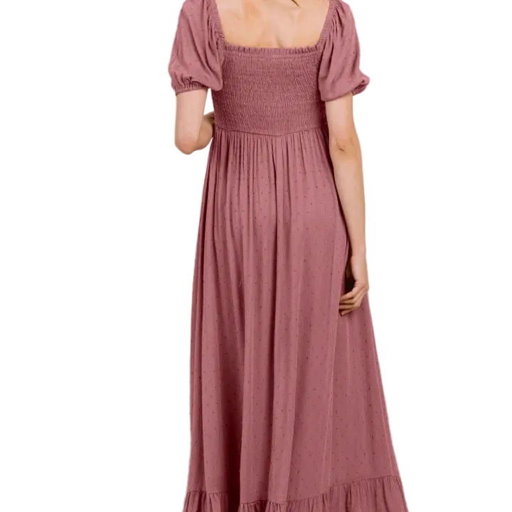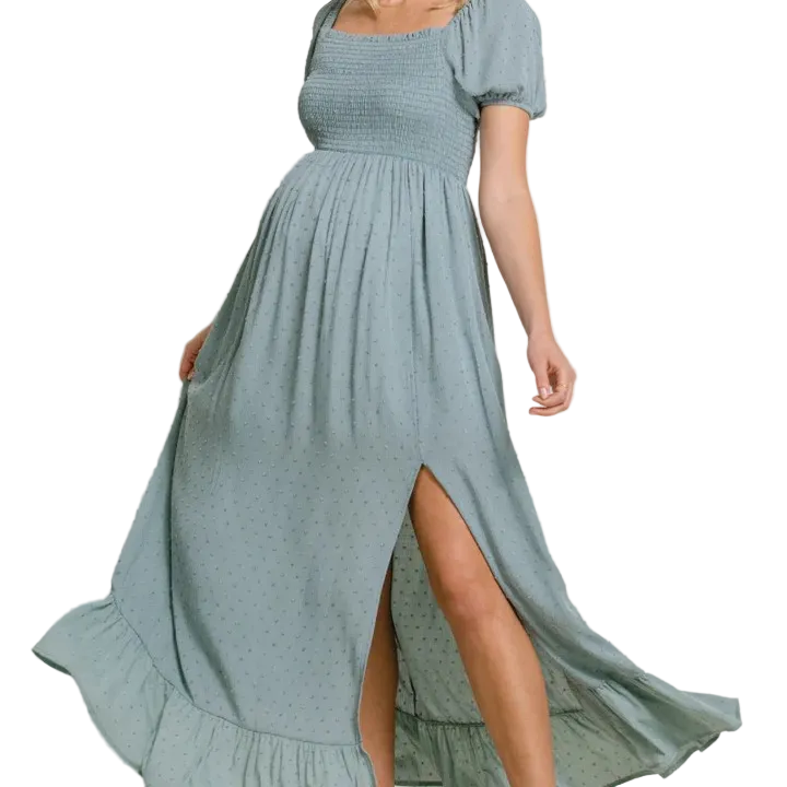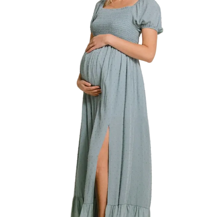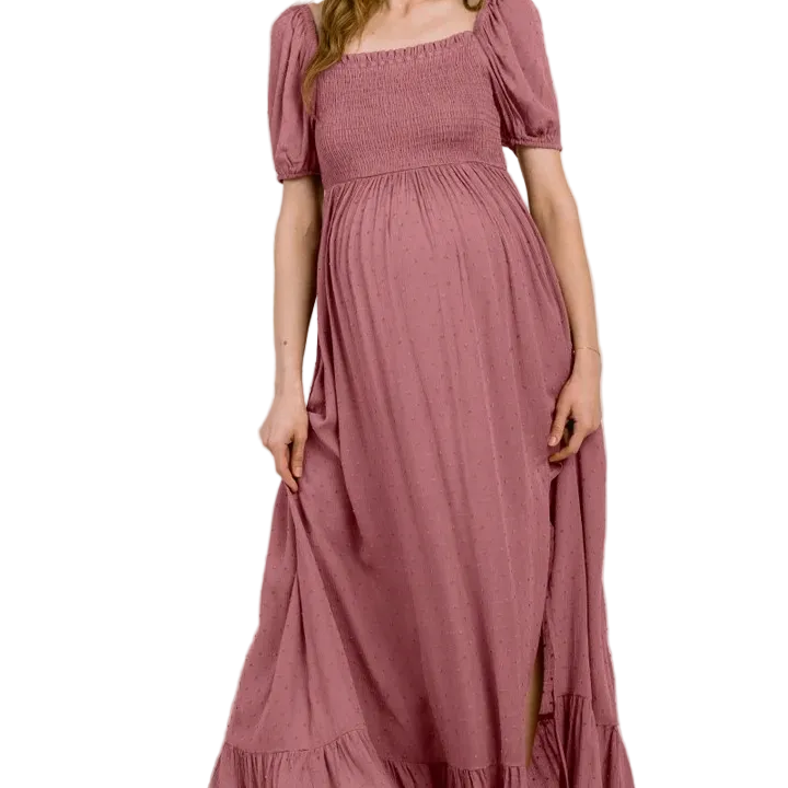 Swiss Dot Smocked Square Neck Maternity Maxi Dress