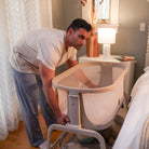 Versatility’s important, too. That’s all thanks to the Iora’s four different height positions that to give you a customized fit. Not only does the Iora bassinet adjust up and down, but side to side as well. For those moments in the middle of the night when your baby wakes up crying, you can easily glide the bedside bassinet closer to the bed to give comfort and care.Let’s not forget the Iora’s sleek and stylish design. It’s sophisticated colors and material finishes blend in beautifully with your modern-day décor.