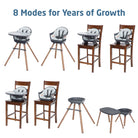 Moa is more than a high chair. Designed for your child from six months to five years old. Moa reconfigures eight ways to extend the longevity of a single grows-with-baby essential. As your little one develops, Moa adapts from a high chair to a booster seat, to a toddler stool, then a handy desk and seat—perfect for your child to eat, discover, play and grow.