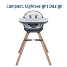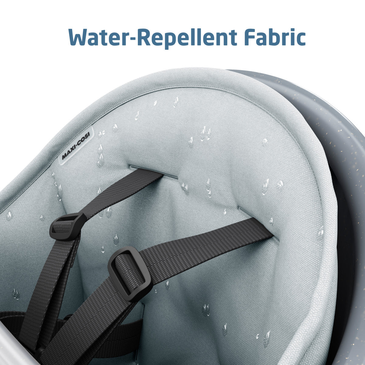Mealtimes are messy, that’s why Moa is designed for easy clean-up. With a water-repellent machine-washable inlay, washable 5-point harness, and dishwasher-safe tray, your little one’s mealtime area is sure to stay as clean as you want it to be. Parents also love the simple set up: no need for screws or additional tools. Moa easily transforms to suit your child’s next stage of development.