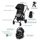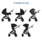 - Choose between 5 modes of stroller use: parent-facing car seat caddy, reversible carriage, and reversible stroller
