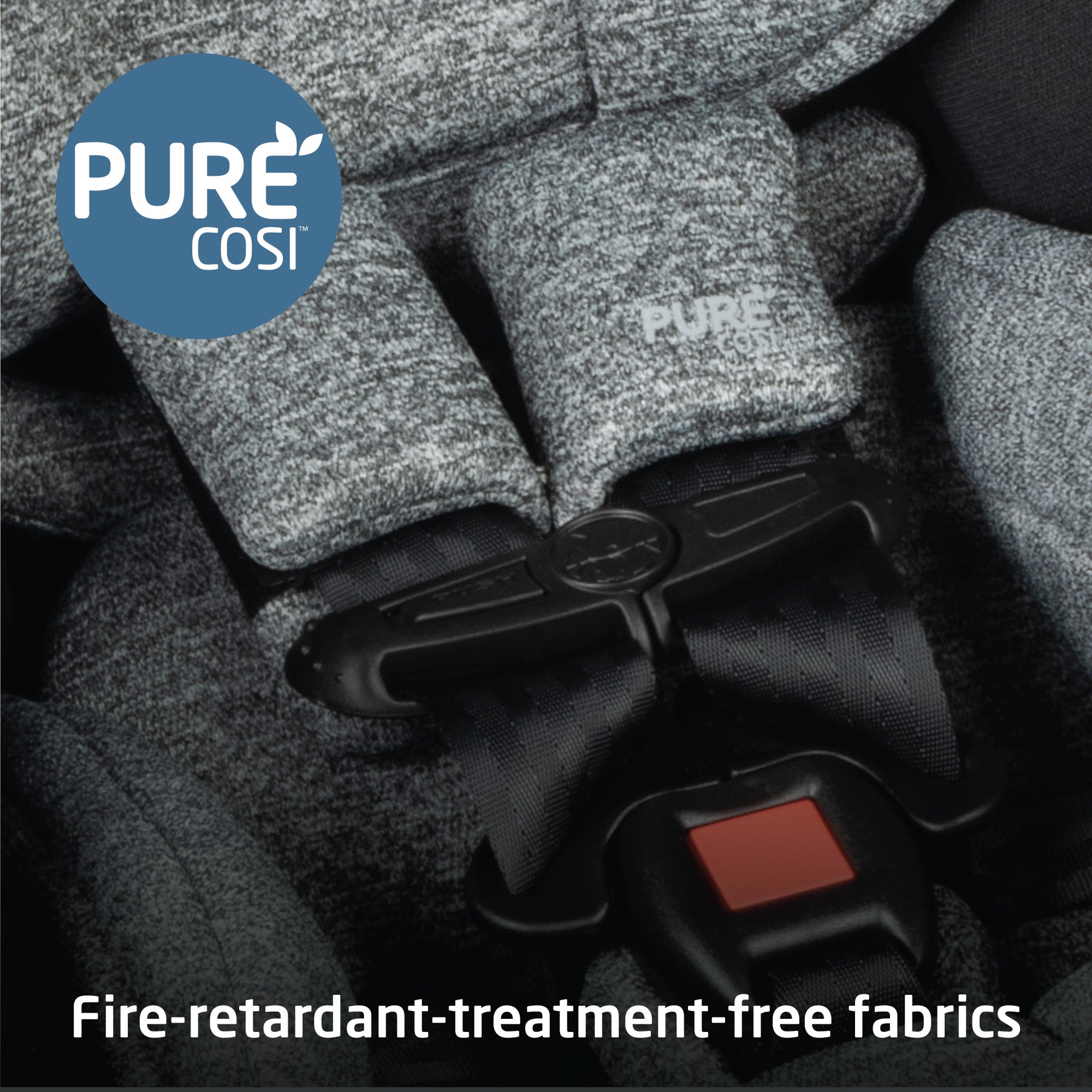 - Car seat features PureCosi fabrics made without wool or added fire-retardant treatment