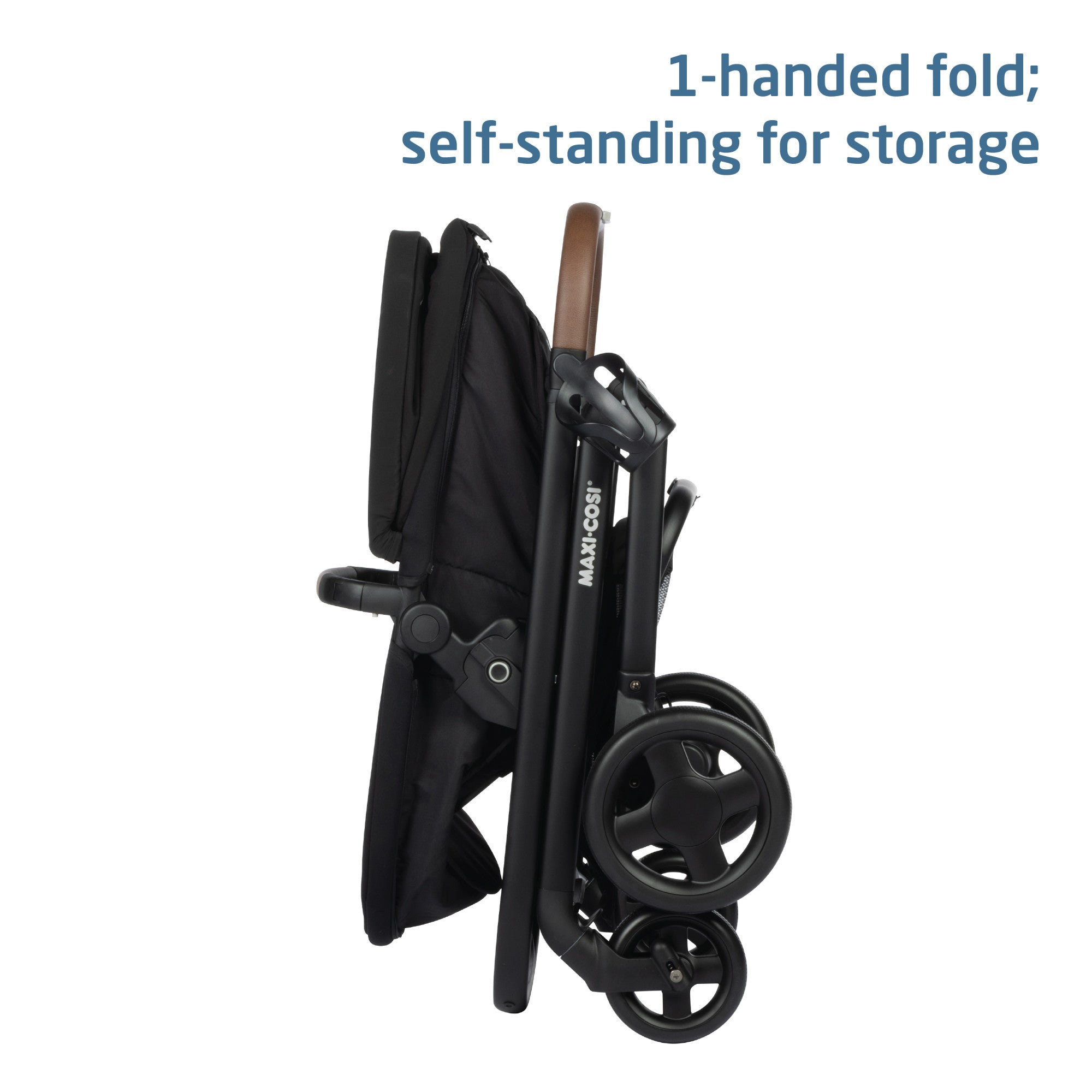 - Stroller features 1-handed fold and is self-standing for convenient storage