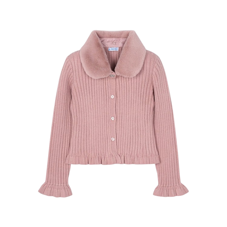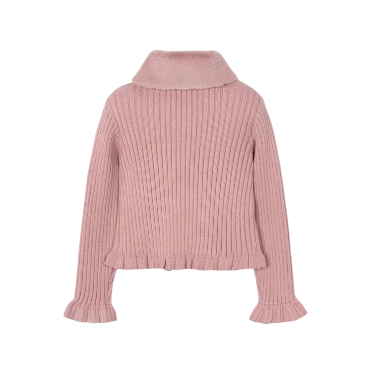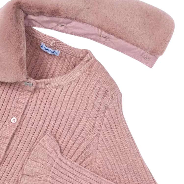 Mayoral Cardigan with Faux Fur Collar