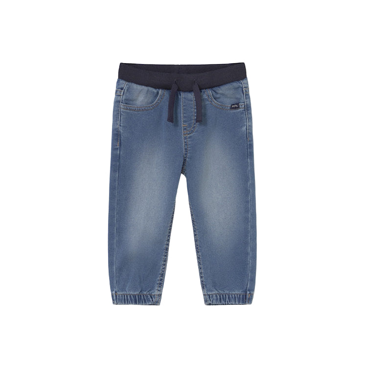 The elasticated waistband with adjustable drawstring ensures a comfortable fit, while the soft denim fabric makes them ideal for everyday wear. A versatile staple for casual, sporty outfits.