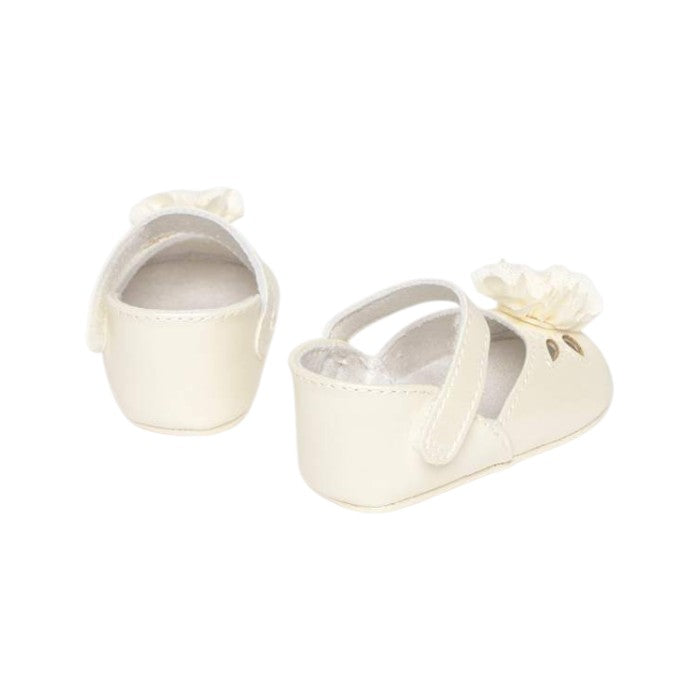 Step out in style with the Mayoral Mary Janes with a flower accent in Ecru. Designed for little feet, these shoes feature a durable 100% polyurethane court and instep, a soft cotton lining and insole (80% cotton, 20% polyester), and a sturdy sole (60% polyurethane, 40% thermoplastic rubber) for all-day comfort and support.