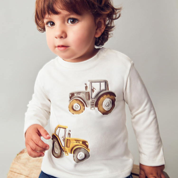 Playful and practical, the Mayoral Interactive Tractor T-Shirt in Cream is a fun addition to your little one’s wardrobe. Made from 100% cotton for all-day comfort, this long-sleeved tee features a round neckline and snap button fastening on the shoulder for easy dressing.