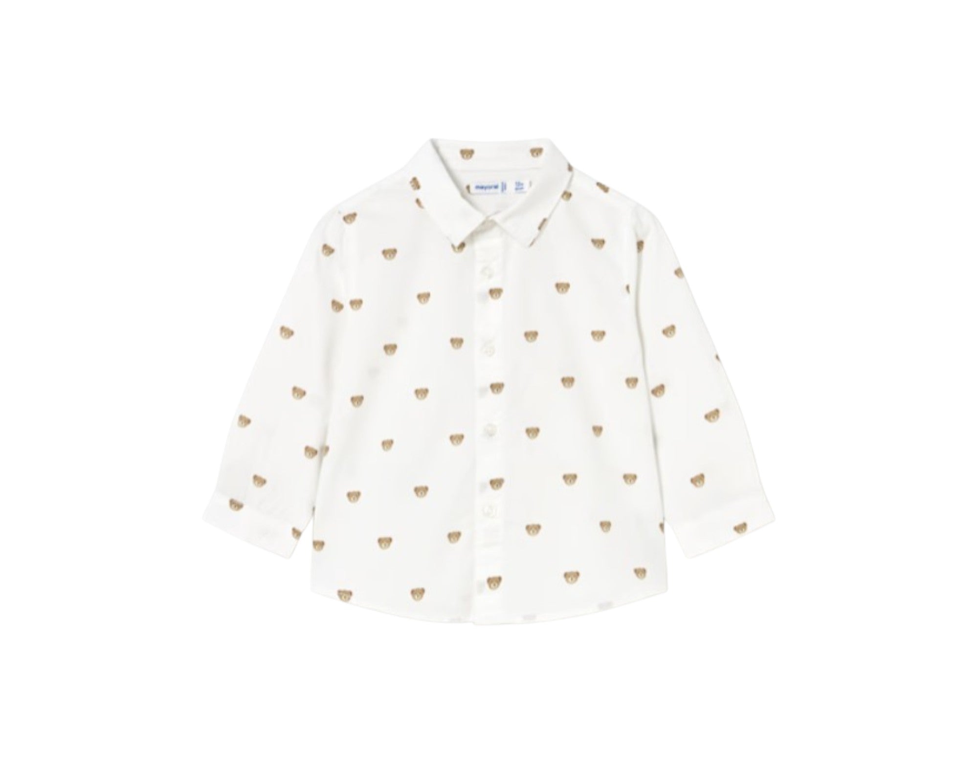 Mayoral Long Sleeve Button-Down - Teddy Bear Print