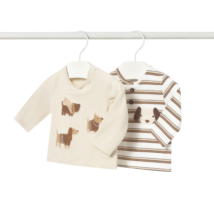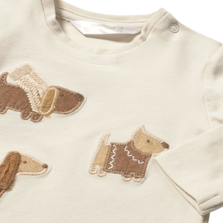 Mayoral Long-Sleeve Dog Embroidered T-Shirt - Peanut