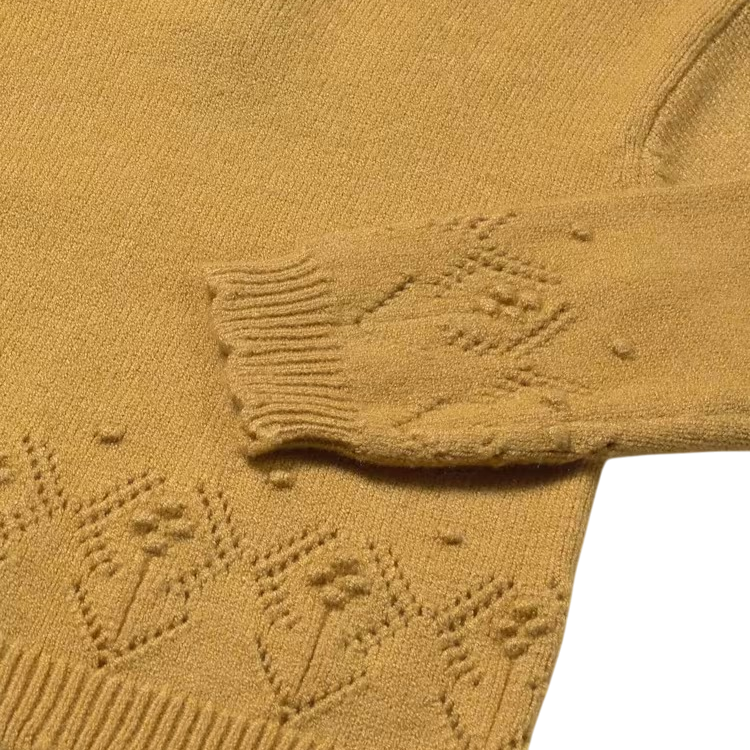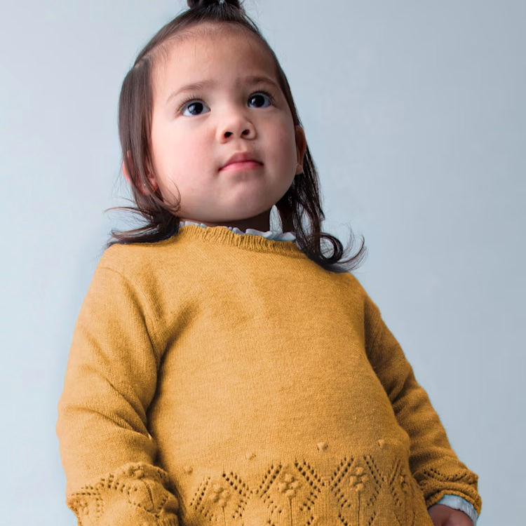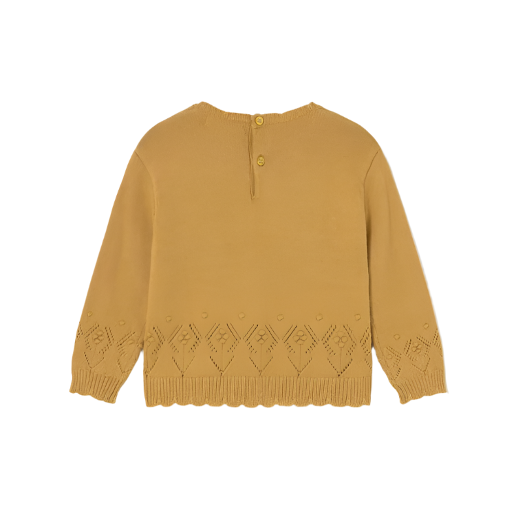 A timeless and cozy essential for your little one, this long-sleeved sweater features a soft round neckline and delicate openwork details for a charming, classic look. Thoughtfully designed with button fastenings down the back for easy dressing and undressing, it blends comfort with style—perfect for layering in any season.