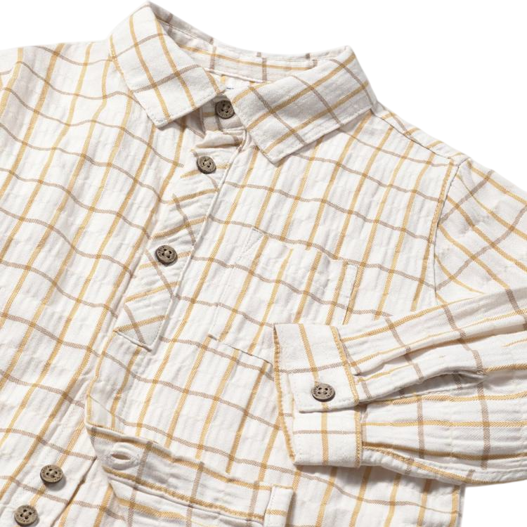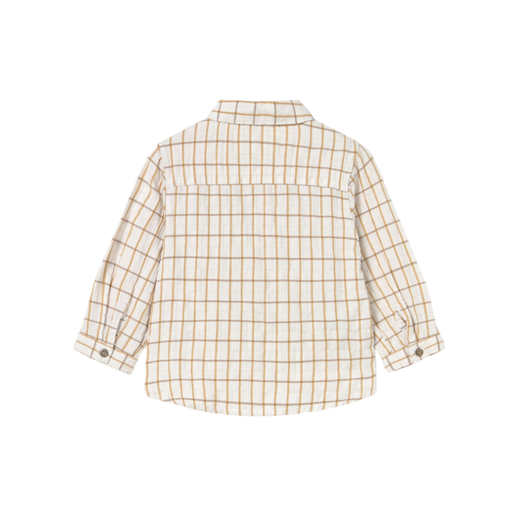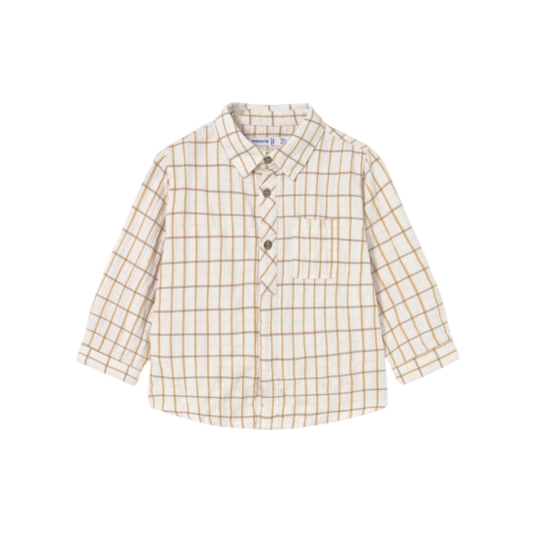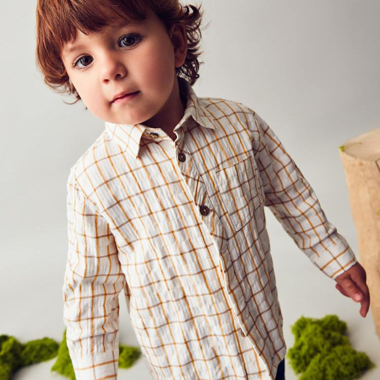A stylish long-sleeved plaid shirt for baby boys, crafted from soft, flowy fabric for all-day comfort.