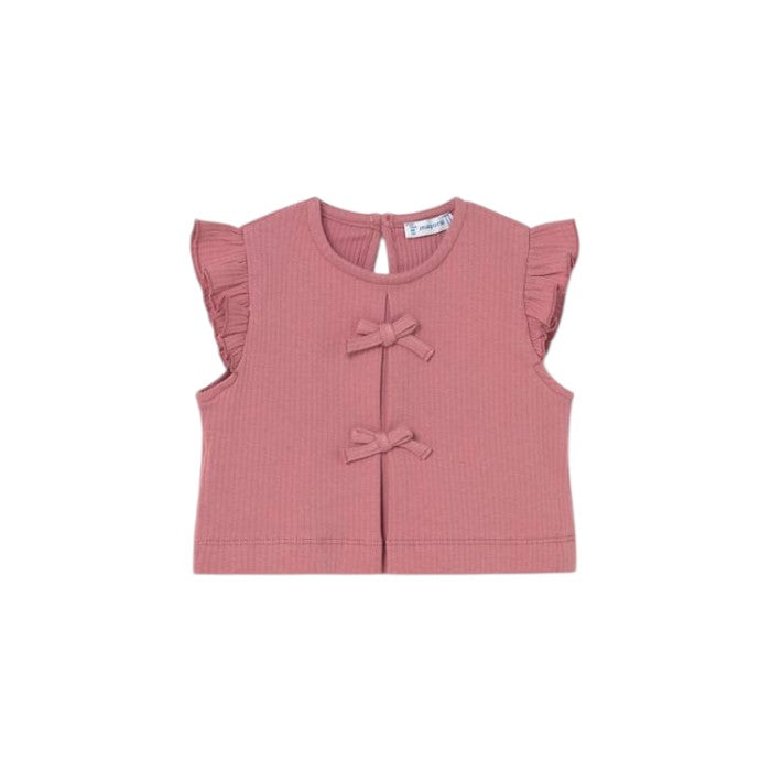 Sweet and versatile, this Mayoral ribbed top features a charming bow details for a touch of playful elegance.
