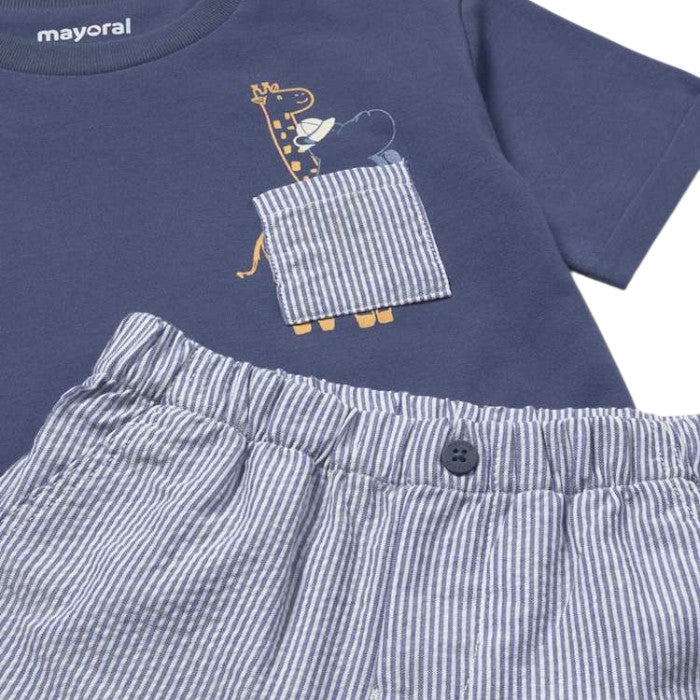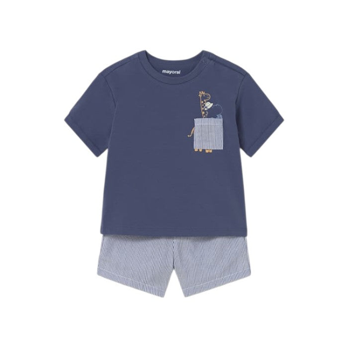 Adventure-ready and irresistibly cute, this two-piece set from Mayoral features a short-sleeve t-shirt with a playful safari animal peekaboo pocket and coordinating Bermuda shorts.