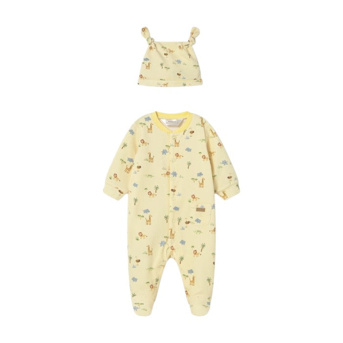 Mayoral Safari Print Button Footie with Hat – Sunny