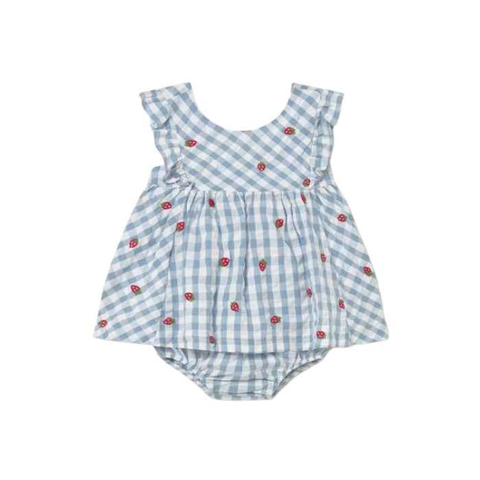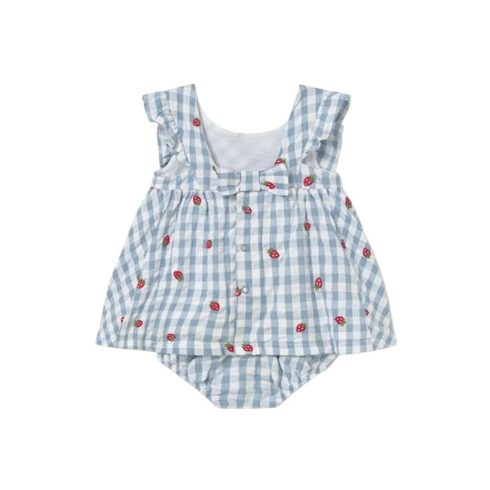 Mayoral Strawberry Gingham Dress + Bloomers - Lagoon