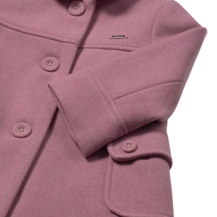 This coat strikes the perfect balance between formal styling and everyday warmth. The wool-blend fabric offers cozy insulation while keeping the garment lightweight—ideal for baby outings or layering over knits and rompers.