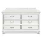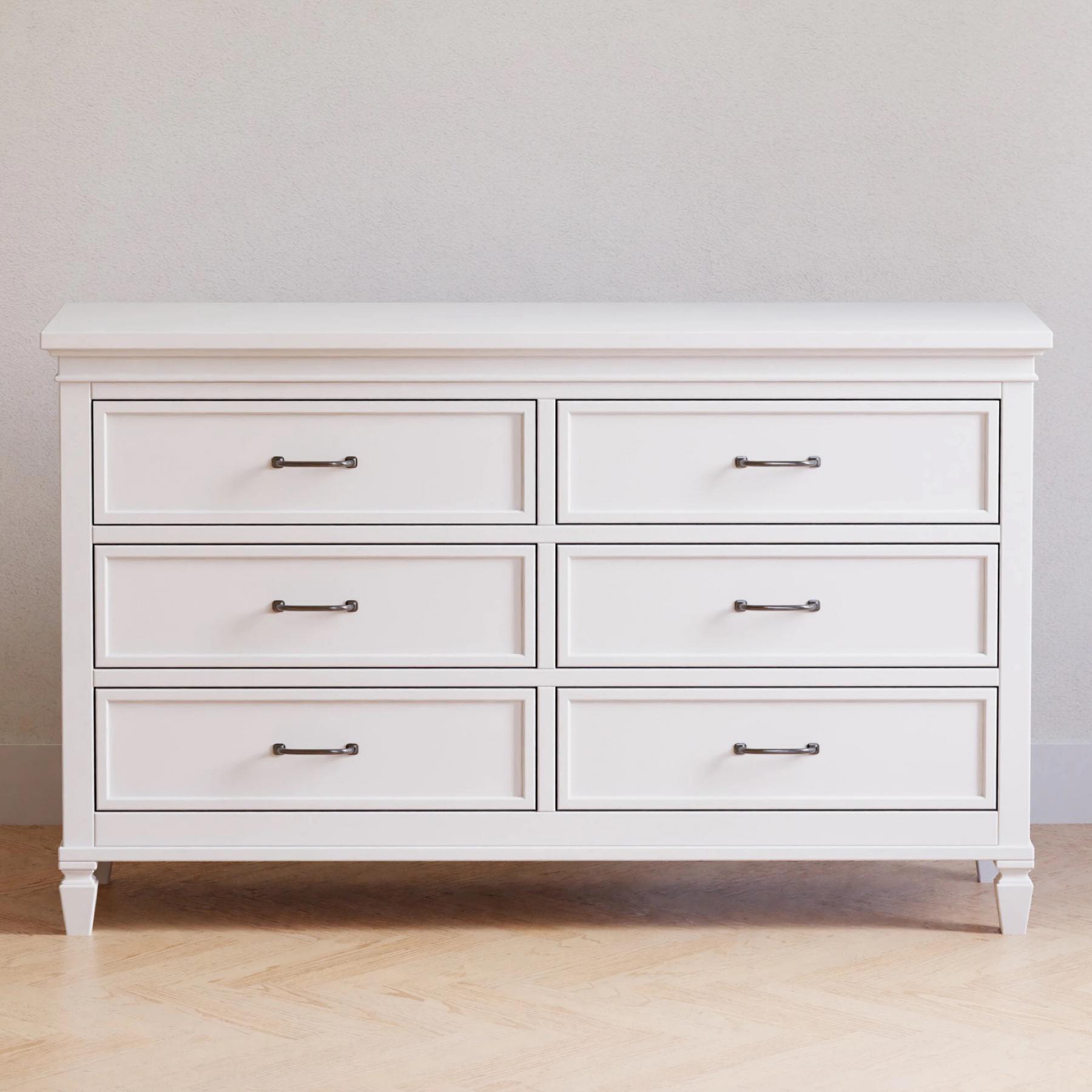 Darlington 6-Drawer Dresser: Six spacious drawers with dovetail construction, self-closing ball-bearing glides, and satin nickel handles. Anti-tip kit included. Can double as a changing table (changing tray sold separately).
