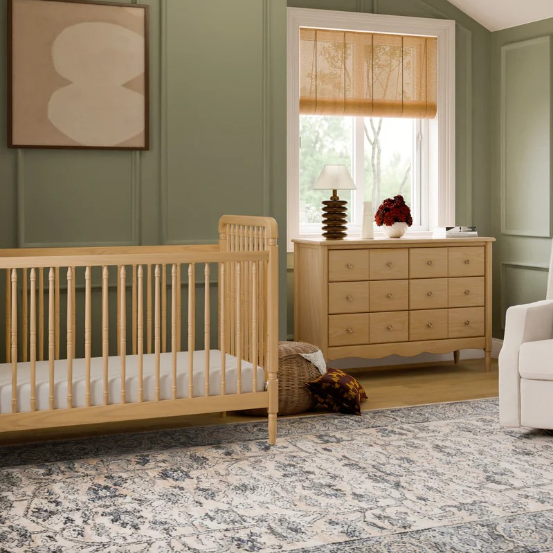 Namesake Liberty 3-in-1 Convertible Spindle Crib with Toddler Bed Conversion Kit + 6-Drawer Dresser Bundle