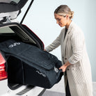 Keep your Nuna gear protected on your next adventure with the essential wheeled travel bag. The bag’s lightweight design allows it to be carried using any of the three handles or pulled behind you like a rolling carry-on - so you are rolling smooth and in style. It even has a storage pocket on the outside for quick access to snacks and toys and an expanding zipper for that extra space needed when traveling with baby.
