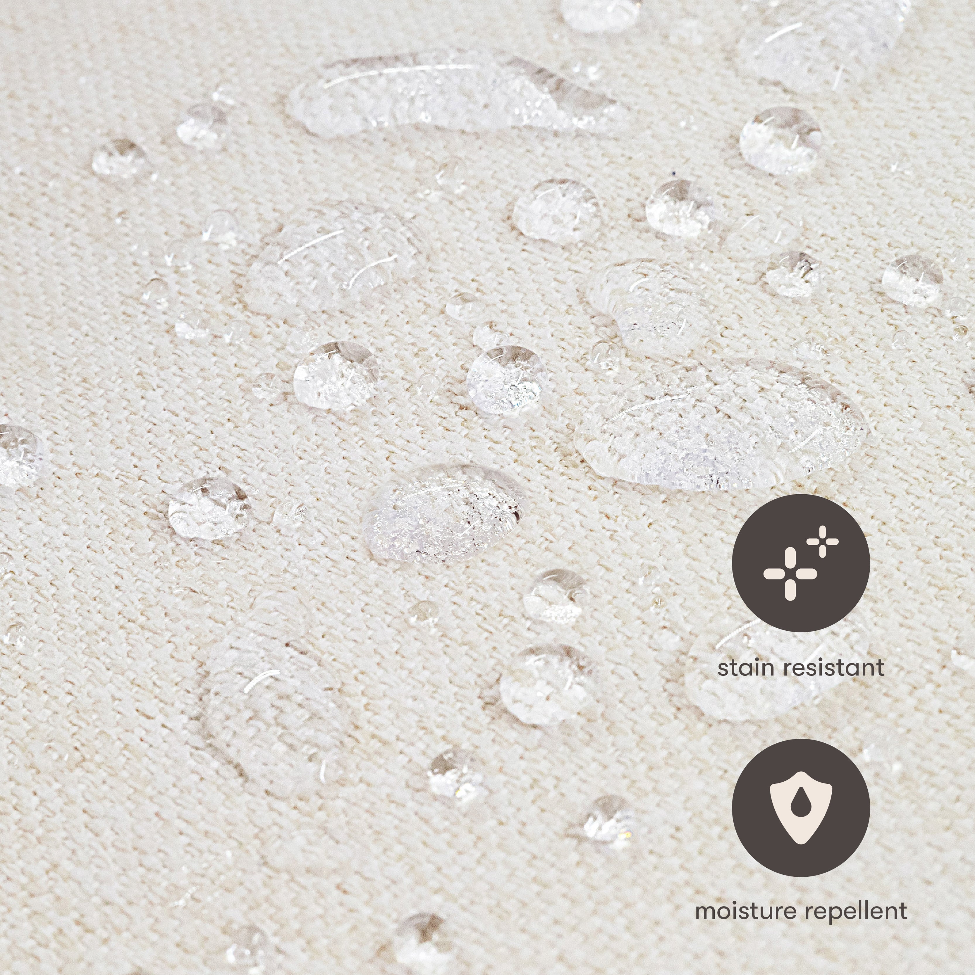 Upholstered by hand in our eco-performance fabric that is stain resistant, water repellent, and made with at least 30% recycled fiber, it is a more sustainable choice for your baby and home.