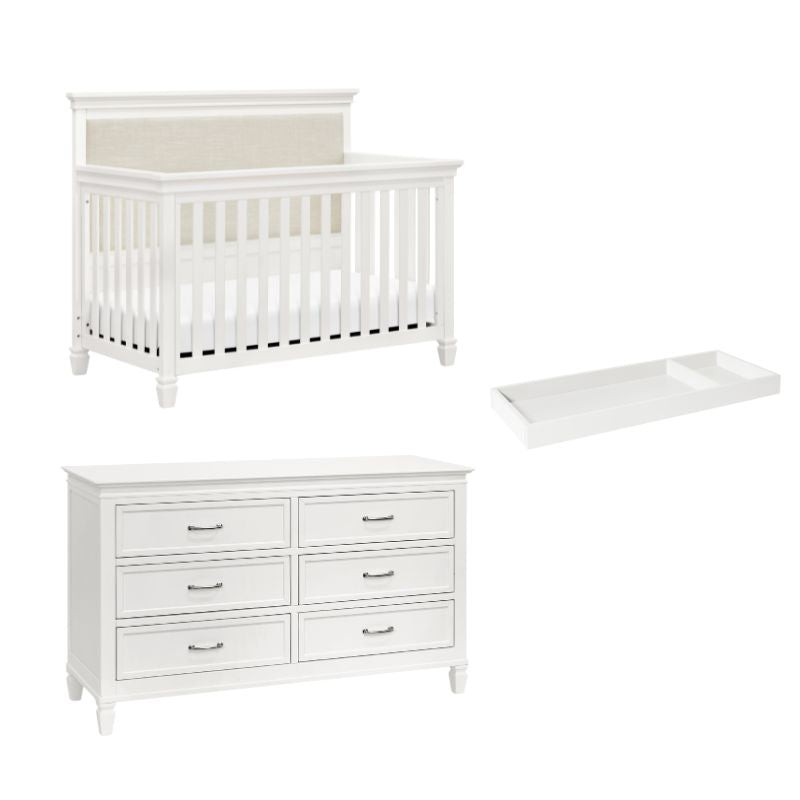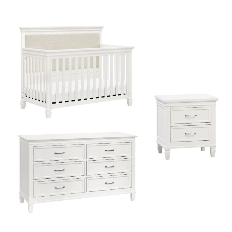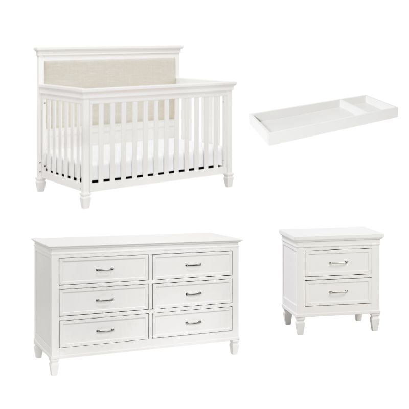 • Darlington 4-in-1 Crib: Converts to a toddler bed, daybed, and full-size bed (conversion kits sold separately), with a removable linen back panel for easy cleaning or customization. Four adjustable mattress heights and hidden hardware construction ensure convenience and safety.