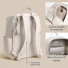 • 17 total pockets (9 internal and 8 external) including 2 insulated bottle pockets and a unique, easy access front mom pocket with stretch mesh pocket and key lanyard.