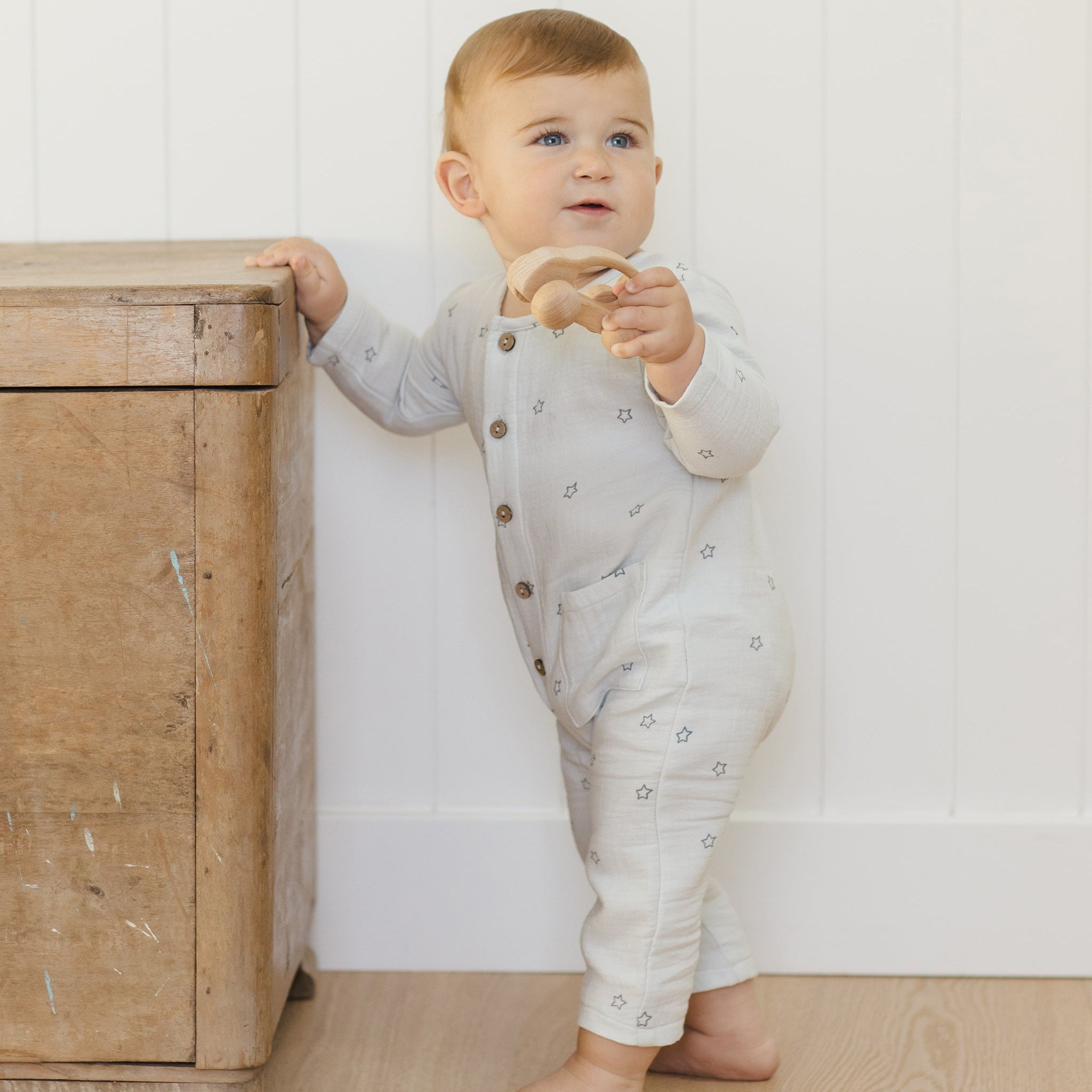 Made from soft organic cotton gauze, this darling jumpsuit features square patch pockets on the front and buttons down the center for easy changing - an everyday staple with timeless charm.