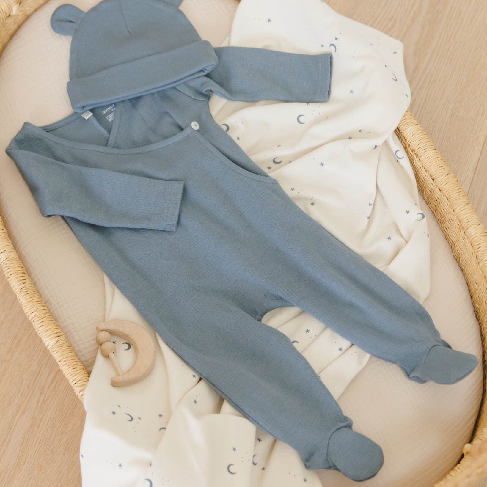 Quincy Mae's Pointelle Wrap Footie keeps your little one cozy and comfortable, with a snap closure on the inside and a button closure on the outside for easy changing.