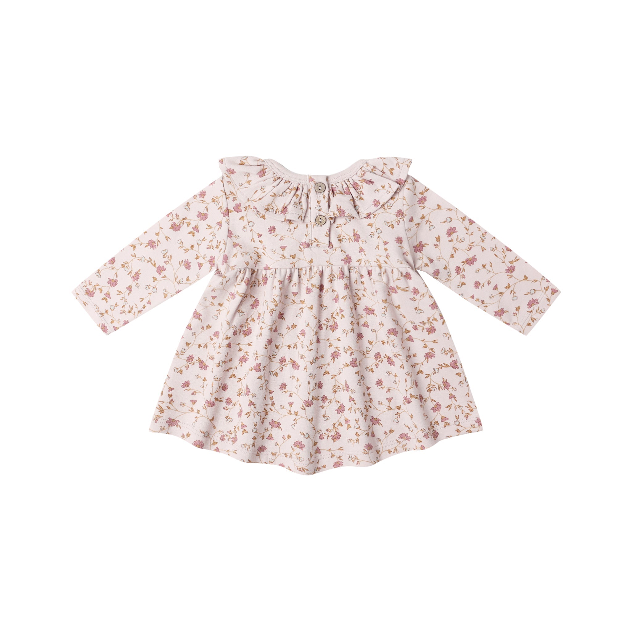 This darling dress is crafted from soft brushed jersey and features a charming collar, coordinating bloomers, and a back button placket for easy dressing. A sweet piece for everyday wear.