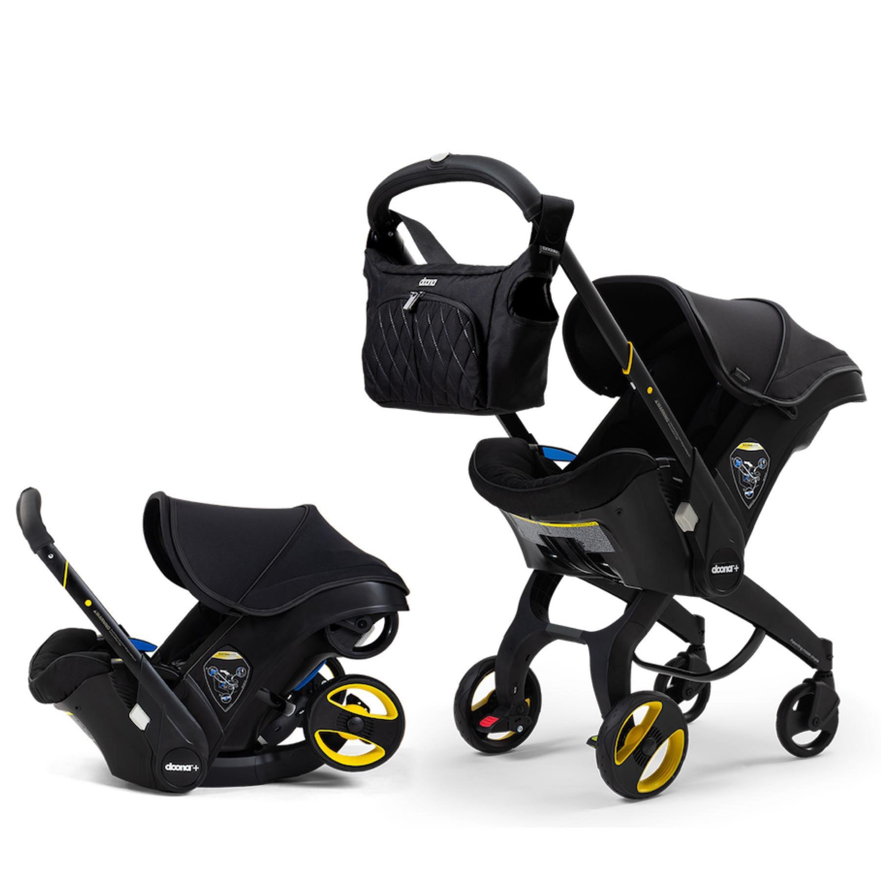 With its strikingly all black design, the Doona Infant Car Seat + Stroller - Midnight is part of Doona’s Midnight Collection that offers an on-trend look that blends seamlessly into the style of the modern parent. The bold, elevated touches turn the Doona Car Seat & Stroller into an elegant yet classic statement piece. This new collection features a diamond shaped seat cover, faux-leather details, and black anodized aluminum throughout. The Doona Midnight Car Seat & Stroller includes a complimentary matching Doona Essentials Bag and luxurious black faux-leather Handlebar Cover.