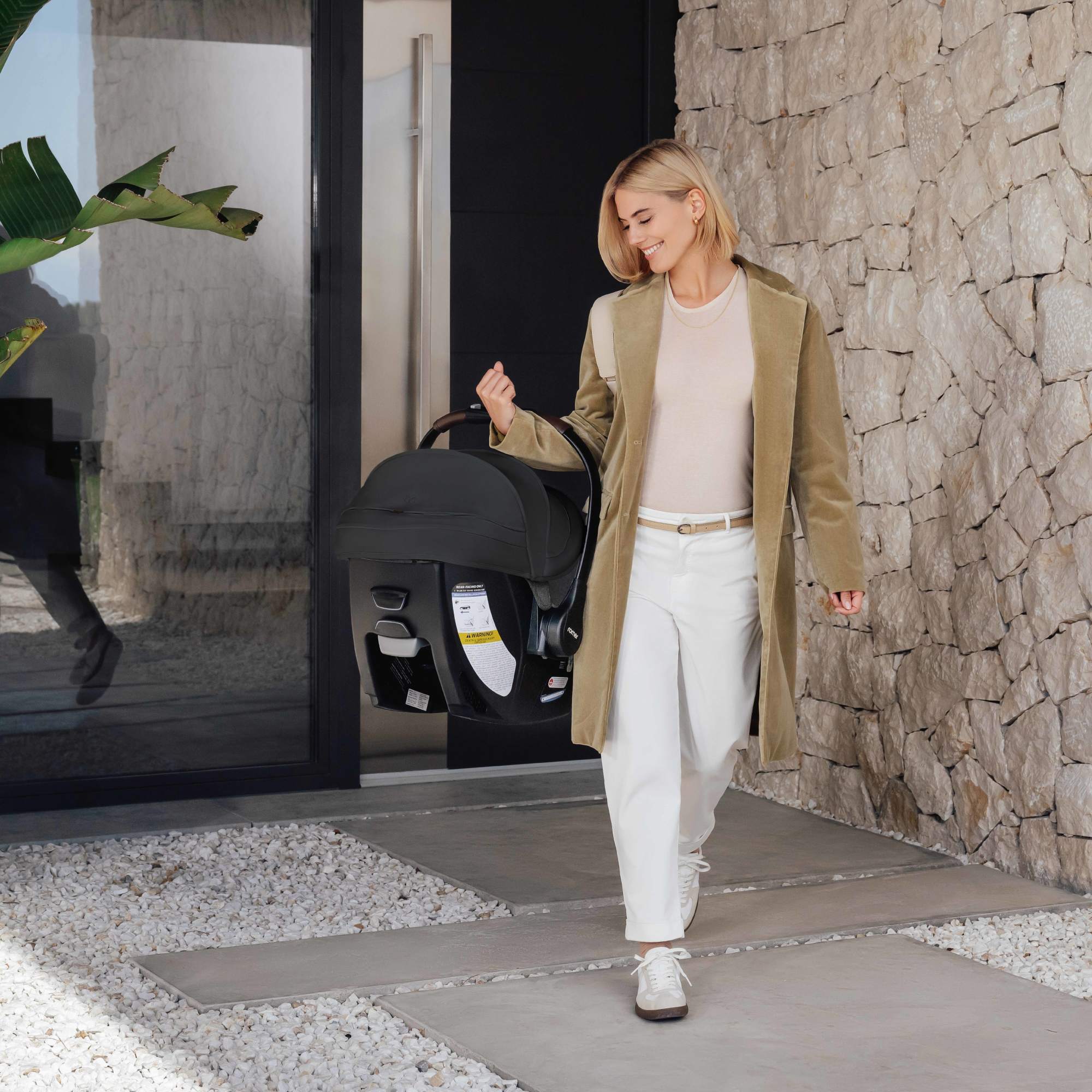 Whether you’re driving your little one home for the first time or getting out to see the world together, surround them with love during all their first moments with the Juni™ & Tura™ travel system. This set includes the Tura stroller, the Juni infant car seat, and the Versa™ car seat base. Juni is a rear facing-only seat crafted with timeless elegance, a petal-soft cover made from Seawool and woven accents, and trusted safety features. The Versa™ base pairs SecureLoc™ technology with rigid LATCH car seat installation for an effortless setup. Tura offers modular versatility, smooth rides, and customizable comfort, making everyday outings seamless. The infant car seat connects directly to the stroller — no extra adapters needed.