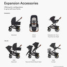 - Transforms by adding a bassinet, a second seat, a car seat-- all are interchangeable and can be used in multiple combinations on this remarkable expandable stroller (additional accessories sold separately)