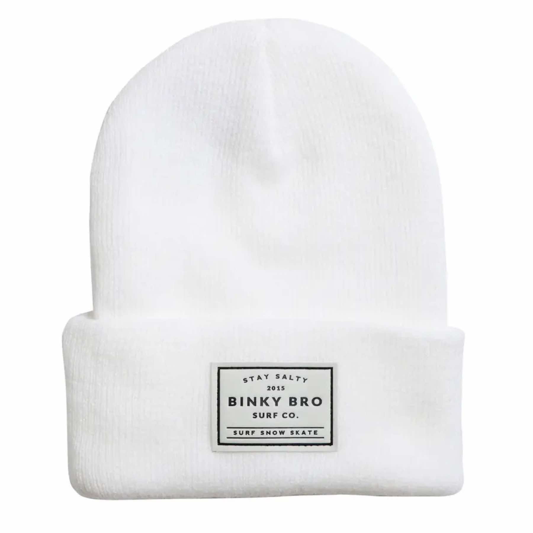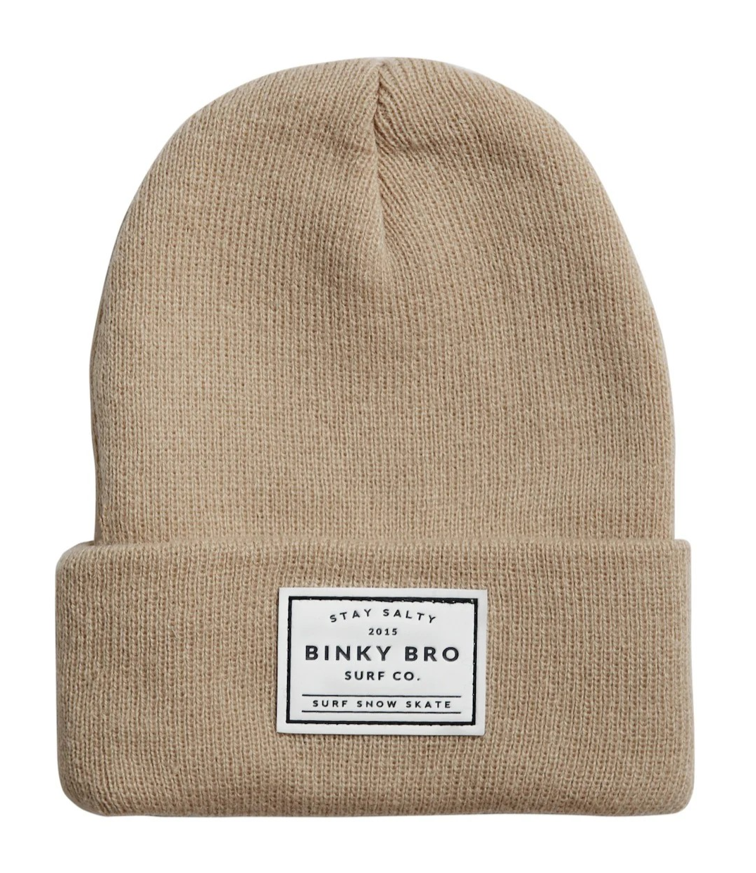 The BinkyBro Tahoe Beanie is made from 100% acrylic for a soft, cozy fit that keeps your little one warm in any season. It features the signature BinkyBro Surf Co – Surf | Snow | Skate embossed patch on the front for a laid-back, adventure-ready look.